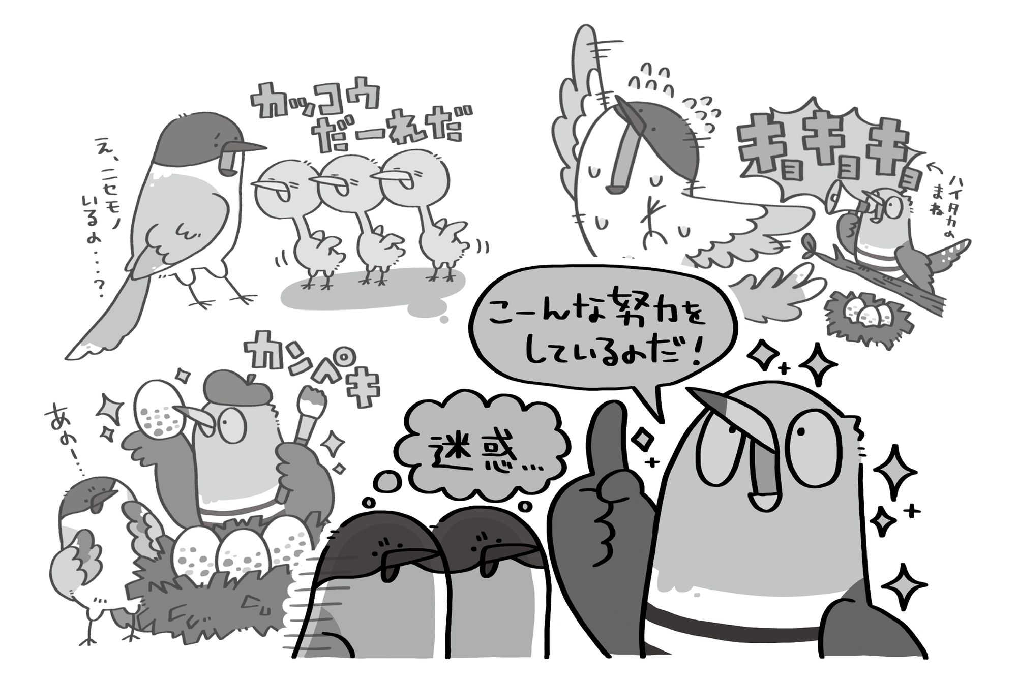 ただ,このようにさまざまな戦略を駆使する割に成功率は決して高くないようで,カッコウだけが増え続け宿主が絶滅……という報告はない。カッコウは托卵戦略を,宿主は見抜く技術を磨く。彼らのいたちごっこは今後も続いていくのだろう。